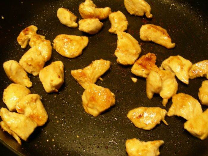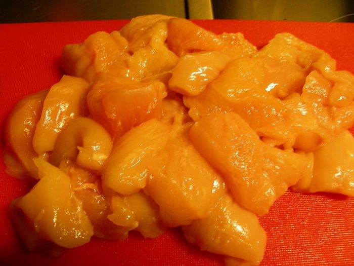 Куриное филе режем небольшими кусочками.