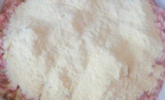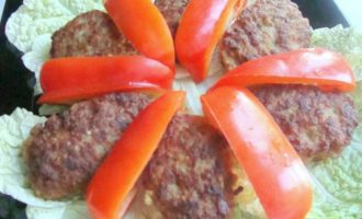 В конце добавить кукурузную муку. Количество можно регулировать. Надо чтобы фарш стал довольно плотным и удобно было лепить котлетки руками.
