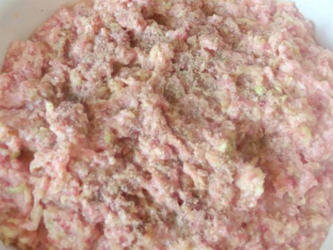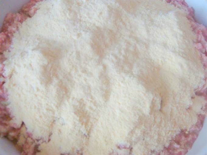 В конце добавить кукурузную муку. Количество можно регулировать. Надо чтобы фарш стал довольно плотным и удобно было лепить котлетки руками.