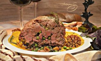 Равномерно распределите на бараньей ноге начинку.