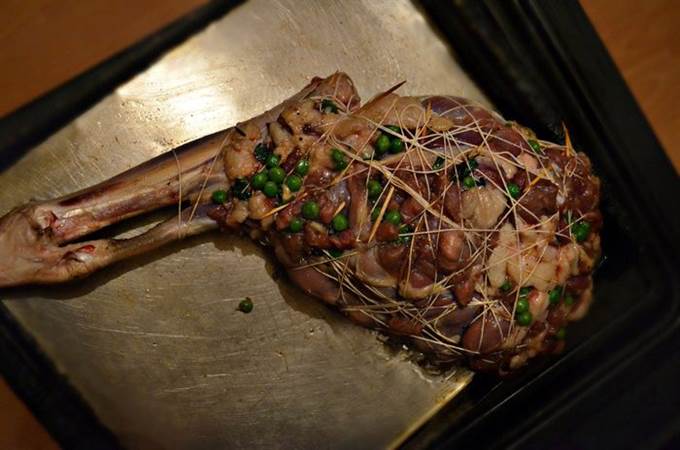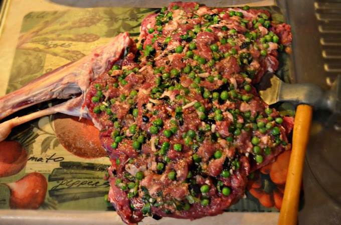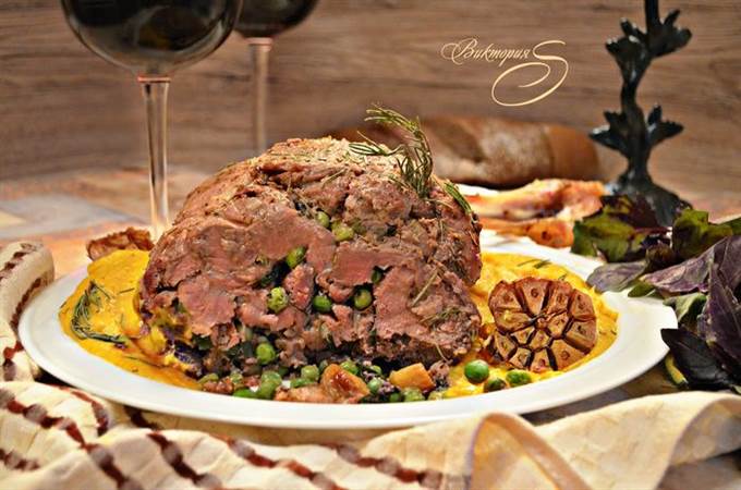 Равномерно распределите на бараньей ноге начинку.