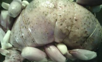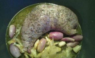 Сверху смазать соевым соусом и посыпать специями, добавить шафран, лук шалот, и дать пропитаться минимум 4 часа, я оставляю на ночь.
