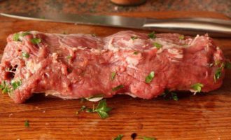 Свиное филе освобождаем от лишних пленок, жиров.