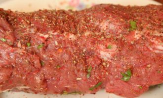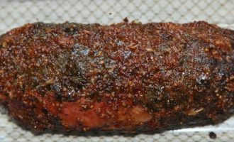 Розовый перец смалываем и натираем им наш рулет.