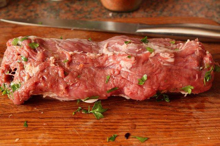 Свиное филе освобождаем от лишних пленок, жиров.