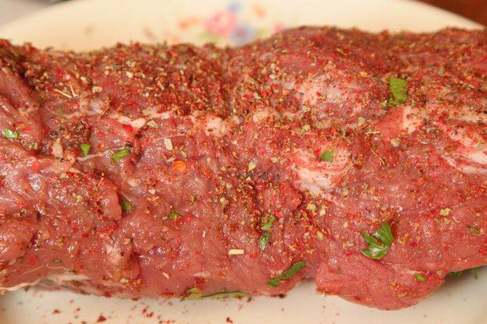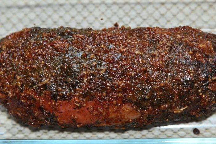 Розовый перец смалываем и натираем им наш рулет.
