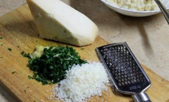 Пока мидии раскрываются, нарежьте мелко петрушку, натрите чеснок и сыр Пекорино или любой твердый, какой у вас есть.