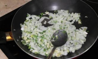 Готовим соус. Нарежьте мелко луковицу и немного чеснока, обжарьте на оливковом масле, добавьте протертые помидоры и немного уварите. Для усиления вкуса добавьте сахар и специи по вашему вкусу.