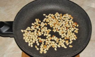 Орешки поджарить на сухой сковороде до золотистого цвета.