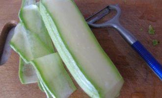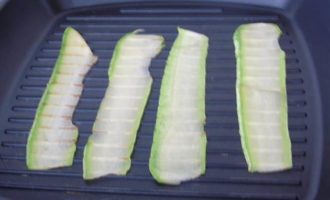 • Разогреть сковороду гриль и обжарить кабачок с двух сторон.