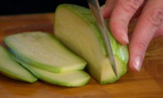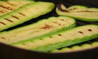 Разогреть сковороду-гриль и обжарить полоски цукини с обеих сторон.