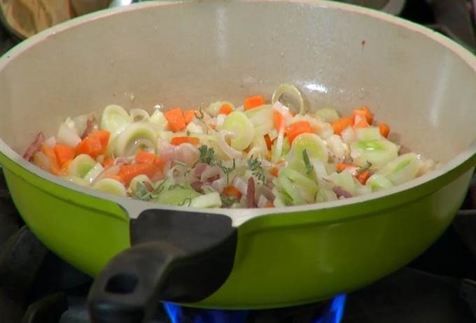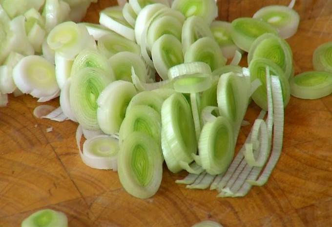 Мелко порубить 3-4 листика шалфея, добавить в сковороду, перемешать и обжаривать все 3-5 минут.