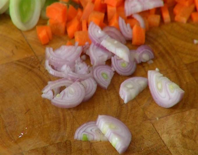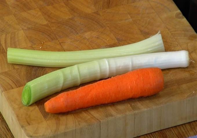 Стебель сельдерея и морковь порезать маленькими кубиками.