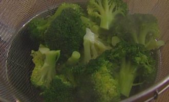 Брокколи разобрать на небольшие соцветия и отправить в кастрюлю с кипящей водой. Отварить до готовности (не переварить!). Затем слить воду и слегка присыпать капусту кунжутным семенем.
