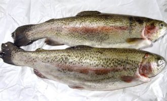 Как выбрать свежую форель? Визуально рыба должна выглядеть, словно только что выловленной из моря. Скрученный и засохший хвост считается одним из главных признаков длительного хранения форели. Чешуя должна быть равномерной и быть без повреждений. Жабры должны быть нежно-розового цвета, без слизи, глаза прозрачные, тушка без вздутий и запаха — такую рыбку смело можно покупать! Рыбу почистить, удалить жабры, промыть и просушить салфеткой.