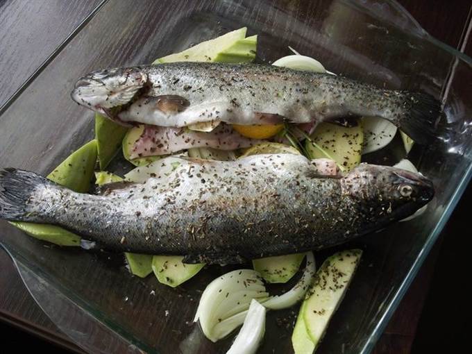 Как выбрать свежую форель? Визуально рыба должна выглядеть, словно только что выловленной из моря. Скрученный и засохший хвост считается одним из главных признаков длительного хранения форели. Чешуя должна быть равномерной и быть без повреждений. Жабры должны быть нежно-розового цвета, без слизи, глаза прозрачные, тушка без вздутий и запаха — такую рыбку смело можно покупать! Рыбу почистить, удалить жабры, промыть и просушить салфеткой.
