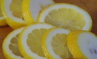 Лимон нарезать кружками.