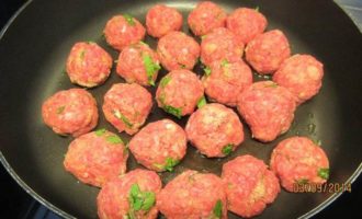 Формируем небольшие фрикадельки и коротко их обжариваем на растительном масле.