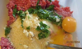Смешиваем фарш, выдавленный чеснок (1 зубчик), яйца, панировочные сухари, петрушку, соль и перец по вкусу. Даем постоять минут 5.