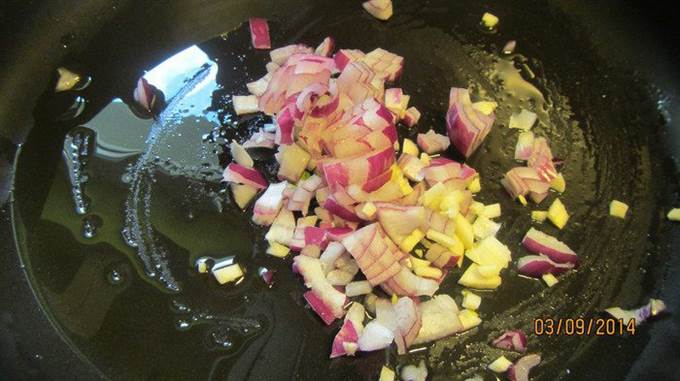 Теперь займемся овощами. Лук и чеснок мелко рубим и обжариваем на растительном масле до мягкости минут 5.