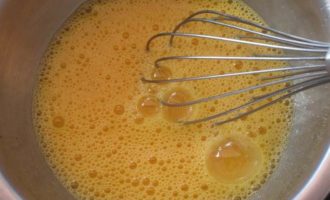 Яйца хорошо взбить, посолить по вкусу, добавить порубленную зелень и хорошо перемешать.