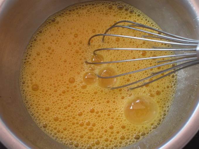 Яйца хорошо взбить, посолить по вкусу, добавить порубленную зелень и хорошо перемешать.