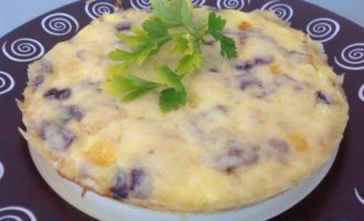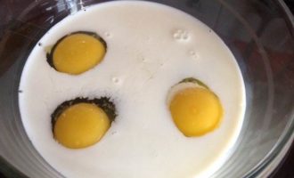 Залейте яично-молочной смесью и готовьте в духовке 20 минут (или пока не схватятся яйца и немного не подрумянится).