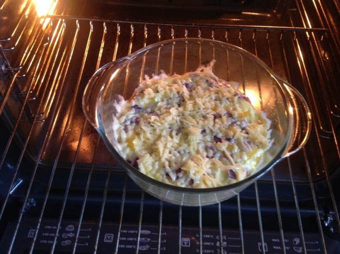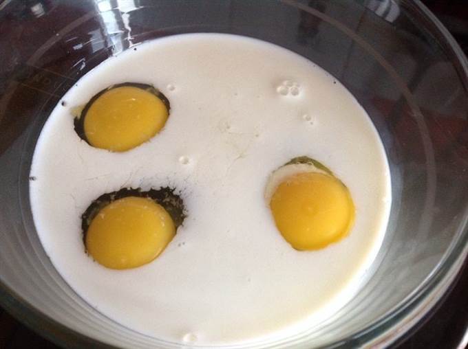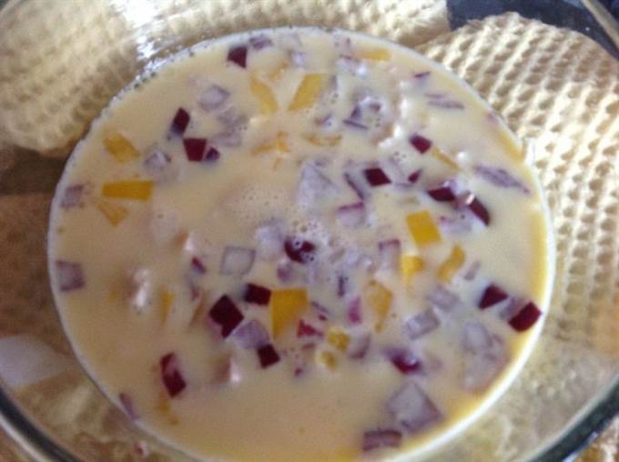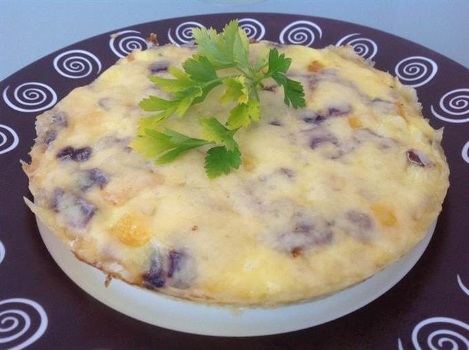 Залейте яично-молочной смесью и готовьте в духовке 20 минут (или пока не схватятся яйца и немного не подрумянится).