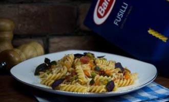 Сварить пасту до полутвердого состояния (аль денте) в кастрюле со слегка подсоленной кипящей водой, полить ее соусом, украсить листиками базилика, разорванными вручную и сразу же подать блюдо на стол.