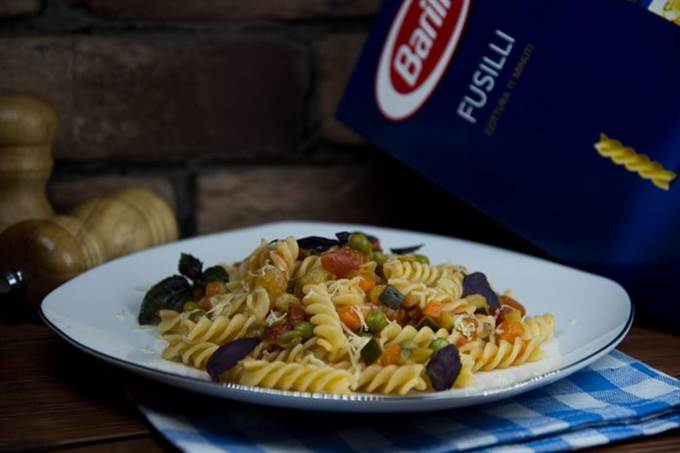 Сварить пасту до полутвердого состояния (аль денте) в кастрюле со слегка подсоленной кипящей водой, полить ее соусом, украсить листиками базилика, разорванными вручную и сразу же подать блюдо на стол.