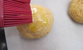 • Из теста сформируйте булочки. Получается 6 шт. Аккуратно кисточкой обмажьте оливковым маслом.