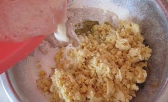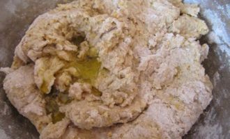 • Перемешайте. Добавьте оливковое масло и замесите тесто. Месите примерно 5 минут.