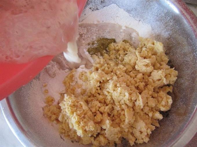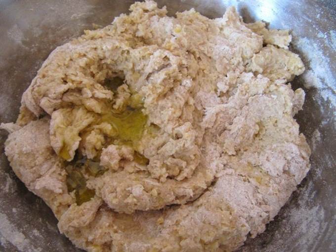 • Перемешайте. Добавьте оливковое масло и замесите тесто. Месите примерно 5 минут.