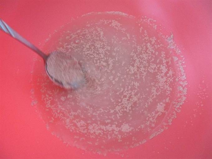 • В миску налейте теплой воды, добавьте сахар, дрожжи. Перемешайте и накройте полотенцем, оставьте на 15 минут.