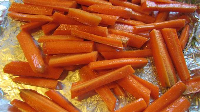 Морковь режем крупными брусочками и выкладываем ее в форму для запекания. Посыпаем ее кориандром и поливаем 2 ст.л. оливкового масла. Перемешиваем и запекаем минут 20 (или до желаемой степени готовности: кто-то любит помягче, а кто-то наоборот) в духовке 200 гр.