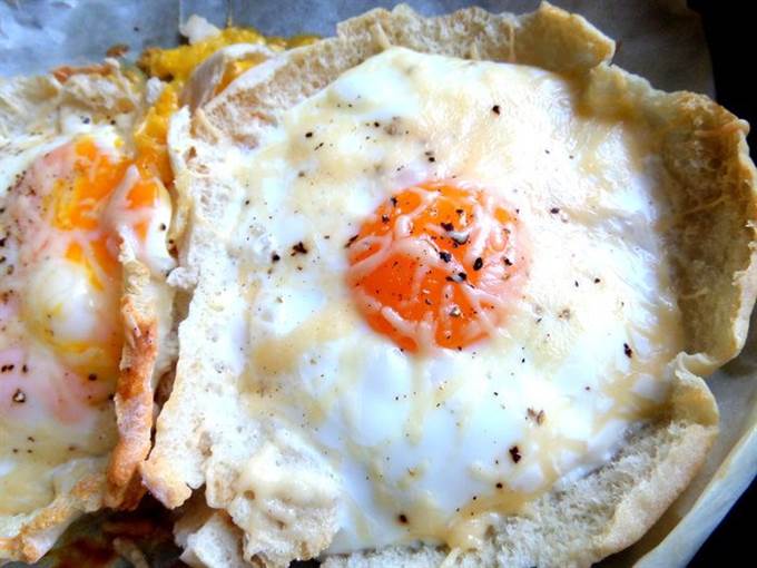 • И отправить в разогретую духовку, пока яйцо не схватится (или оставить желток полужидким).