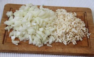 • Репчатый лук (320 г) и корень сельдерея (80 г) нарезать кубиком или бруском.