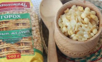 • Горох ТМ «Националь» (200 г) замочить на 3 — 5 часов в воде с 1 ч. л. соды. Промыть.