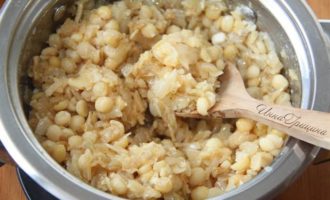 • Добавить к готовому гороху тушеные коренья, перемешать.