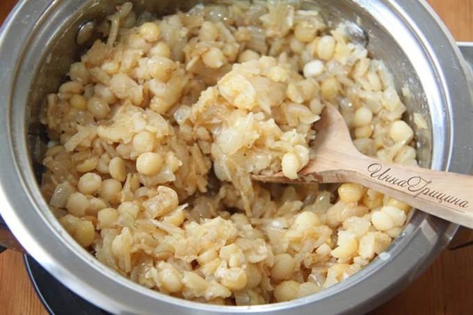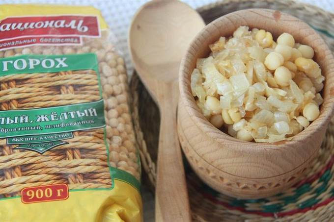 • Добавить к готовому гороху тушеные коренья, перемешать.