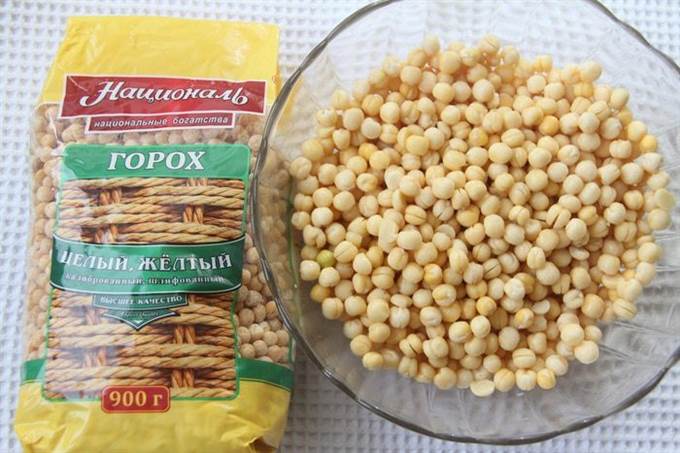 • Горох ТМ «Националь» (200 г) замочить на 3 — 5 часов в воде с 1 ч. л. соды. Промыть.
