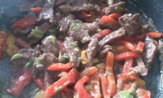 Выложить в соус мясо с овощами.