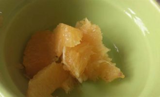 Апельсины очистить от кожуры, вырезать мякоть из сегментов.