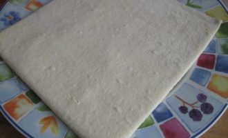 На присыпанном мукой столе раскатать тесто в прямоугольник толщиной в 4 м.
