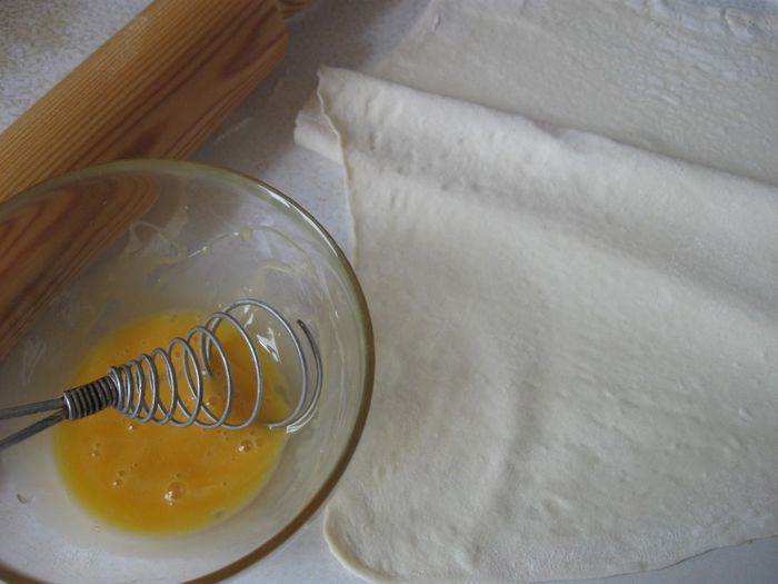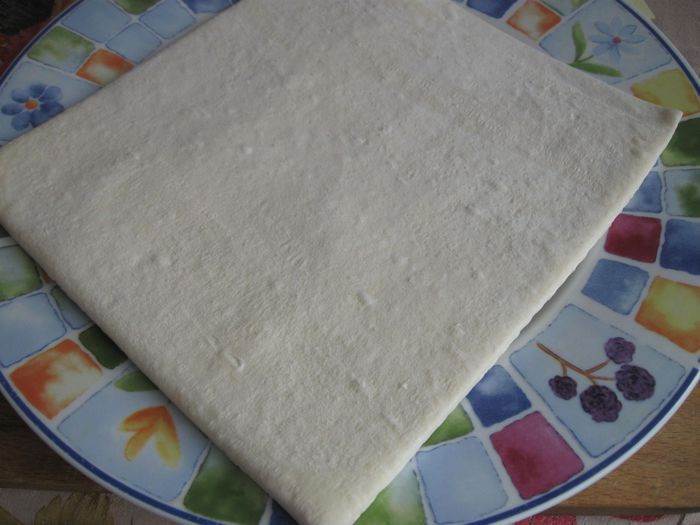 На присыпанном мукой столе раскатать тесто в прямоугольник толщиной в 4 м.