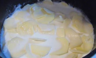• Как молоко закипит, кидаем туда картофель и варим 8-10 минут.