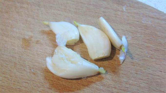 • Чеснок очистить и раздавить ножом, кинуть в молоко со сливками.