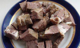 Затем добавить мясо и обжаривать ещё две минуты. -