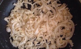 На сковороде разогреть 2 столовые ложки растительного масла, выложить лук и обжаривать, помешивая, 4-5 минут. Затем добавить 3 столовые ложки муки, перемешать и обжаривать еще 2-3 минуты