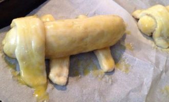 Сформировать «песика». Но это лучше делать уже на противне, застеленном бумагой для выпечки!